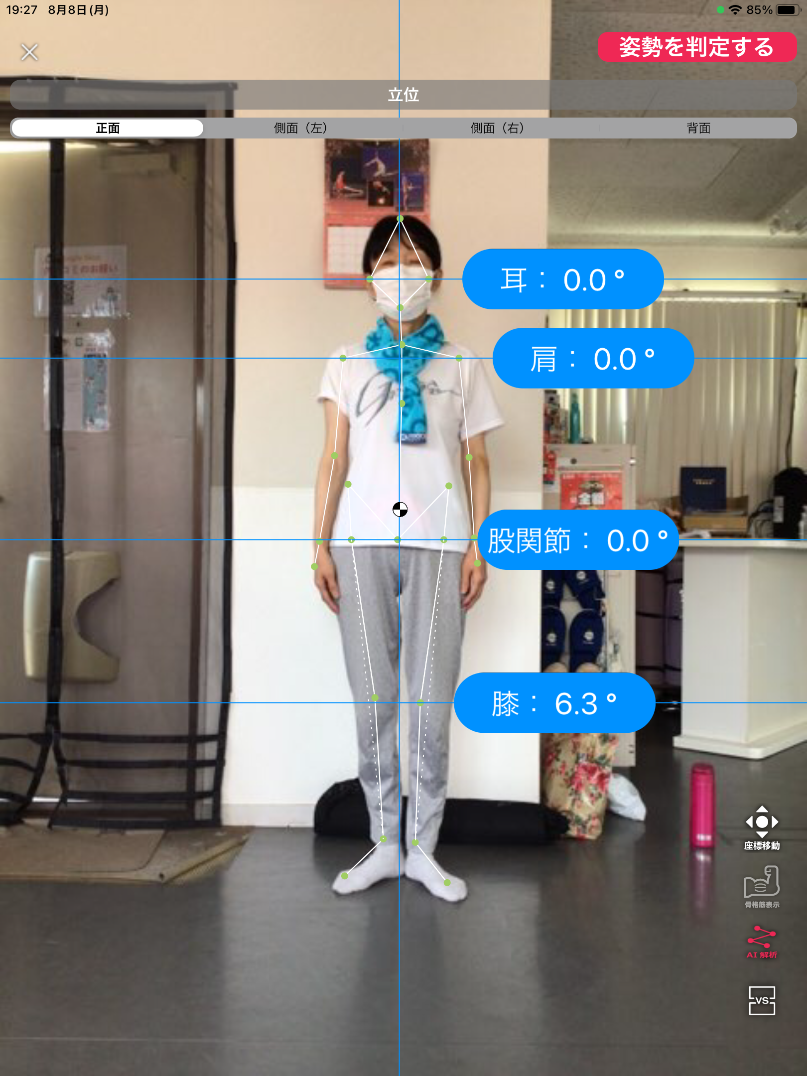 姿勢解析システム(Sportip)で体の歪みを可視化。